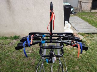 Vends porte vélos pour 2 vélos avec fixation sur boule d'attelage en 2 points de sécurité avec 2 clefs antivol. Ce support se bascule avec les vélos et est fourni avec sangles de f