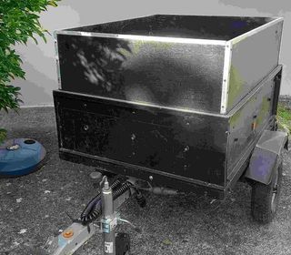 Je vends une remorque (avec un pneu de dépannage) de marque Feu Vert dont le volume a été augmenté par l'apport de panneaux bois CTP de 16 mm d'épaisseur, renforcés par des profi