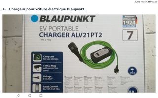 Chargeur pour Voitures Électriques BLAUPUNKT. Différents amperage. Jusqu'à 16 Ah soit 3,7 Kw sur prise renforcée. Câble 8 mètres. Valise de rangement. Très bon état