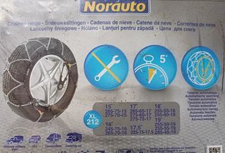 Chaînes Norauto pour jantes de 15" à 19" et pneus de 245 à285 Jamais utilisées excellent état.