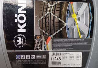 Vend deux jeux de Chaînes König 245 Chaque jeux peut être vendu séparément au prix de 40€ Voir dimensions sur photo. Jamais utilisées. Excellent état.