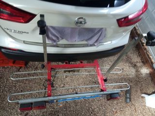 sur boule d'attelage, 2 vélos, rails extensibles, poternes de fixation pour le cadre réglables, plaque et éclairage réglementaires, montage rapide et solide
