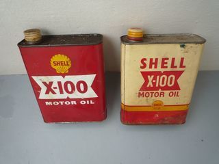 Lot de 2 bidons d'huile anciens SHELL X 100 collection - Bon état - Frais d'envoi Colissimo France métro. 9,59 euros - Emballage soigné sous carton renforcé polystyrène - Enlèvemen