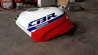 RESERVOIR blanc, rouge, bleu pour HONDA cbr 1000F 1990.. En BON ETAT, sans robinet, avec clé