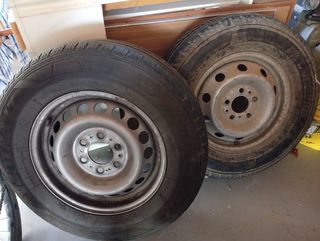 Vends 2 pneus avec jantes pour utilitaire ou camping-car pouvant servir de roues de secours. Jante 6 trous avec pneu hankook 235/65R16 usure 80% au prix de 10 euros Jante 5 trous