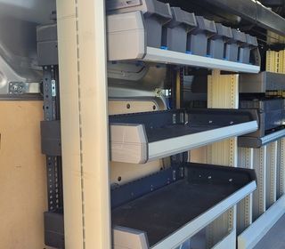 Vends 3 modules pour fourgon utilitaire : (H1L1) 101 longueur x 115 hauteur x 40 profondeur chaque élement ( 2 éléments réunis avec 1 seule pied au centre pour équipement coté four