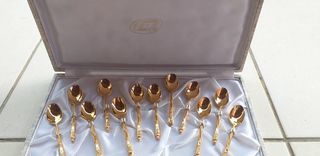 12 petites cuillères dorées orfèvrerie Chambly avec poinçon estimées à 120 euros , vendues à 70 euros.