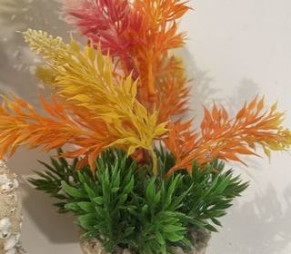 à€ nettoyer lot d'accessoires de décoration pour aquarium 3 plantes artificielles colorées (jaune, orange, rouge/rose) avec socles lestés pour une bonne tenue au fond du bac 1