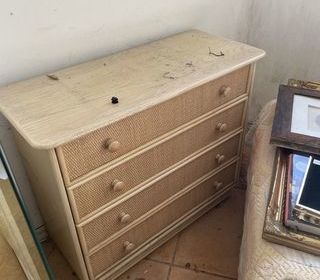 Ensemble assorti Commode 1 m x 0,75 m x 0,40 m 2 Tables de chevet 0,55 m x 0,50 m x 0,35 m Collecte pour une vielle dame, derniers jours avant destruction des articles Ne