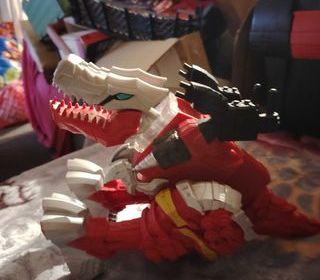 bonjour mesdames et messieurs bientôt Noël voici un dinosaure qui s'articule dans tous les sens vous lui direz le bout de la queue le cou se rallonge la mà¢choire se lève et des br