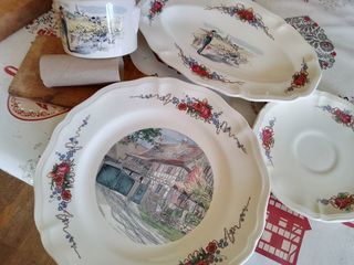 L'assiette dessert une pour 30 €. Grande assiette une pour 40 €. La cafetière 45 €