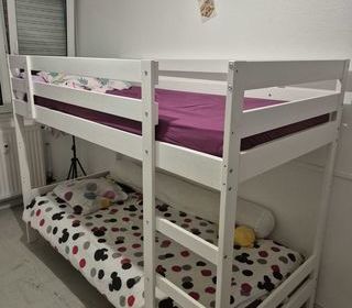 Lit superposé IKEA, couchages 90x200 cm. Acheté il y a 6 mois, il est quasi neuf et en très bon état, aucun défaut à signaler. À venir récupérer sur place, le lit sera à démonter