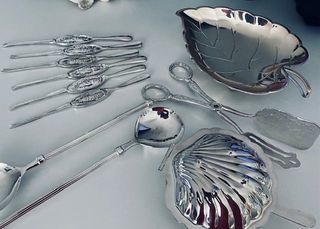 Pince à service plaqué argent vintage 14 E Beurrier plaqué argent en forme de coquillage vintage avec couteau