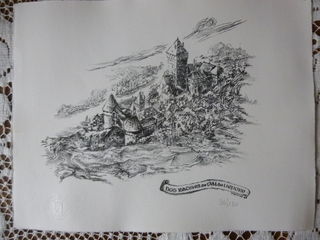 MAGNIFIQUE ET AUTHENTIQUE LITHOGRAPHIE SUR PIERRE DU CHATEAU DU HAUT KOENIGSBOURG . TOM BOROCCO . NOS RACINES EN VAL DE LIEPVRE . DATEE : MAI 2002 . SIGNEE , ET NUMEROTEE . DE