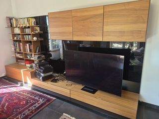Cuisine complète en bois massif cérusé avec évier, lave vaisselle, plaque 4 feux gaz, four, micro-ondes, réfrigérateur. Dimension 3M30x60cm et 2M 80 x 45 cm voir photo. Bon état
