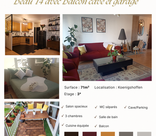 Appartement de 71 m² au 3e étage sur 4 (avec ascenseur), lumineux traversant Est-Ouest, situé au début de la Route des Romains, avec le Tram F (arrêt Comtes) au pied de l'immeuble.