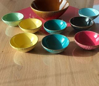 Modèle vallauris fat lava a effet minérale des alvéoles textures de roche volcanique des années 60.trace d'usage. 1 pot à lait 1cafetiere avec couvercle. 1 sucrier avec couverc