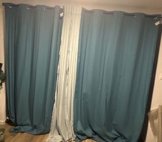 Vend lot de 4 rideaux Mesures: 2 rideaux bleu foncée 140x260 cm 2 caches rideaux blanc: 140x260 cm