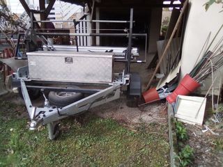 REMORQUE PORTE SCOOTER ET VELOS AVEC TREUIL EVITANT LES EFFORTS MARQUE SAWIKO AVEC UN DISPOSITIF DE MONTEE ET DESCENTE PAR TREUIL AVEC BLOCAGES 1 COFFRE DE RANGEMENT DIMENSIONS : L