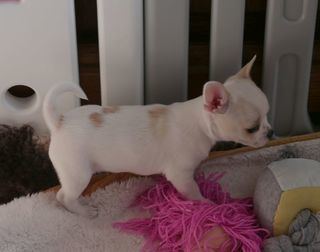 Disponibles à partir du 22 Avril, deux magnifiques chiots chihuahuas mâles poil court non inscrits au LOF ( auront un pedigree fbkc non affilié à la FCI ), issus de parents confirm