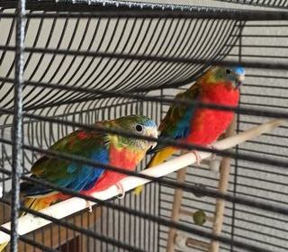 Couple de jeunes turquoisines avec cage à roulettes avec plateau de nettoyage et tous ses accessoires, oiseaux bagués et sexés, ,cage achetée 179 euros en animalerie