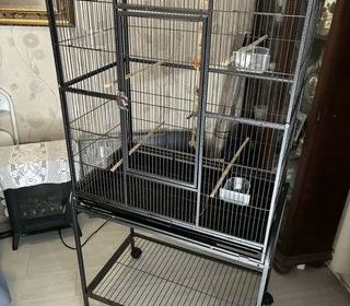 Je vend une grande cage pour oiseaux exotiques, canari, .perruche.petit perroquet Dimensions totale 77 cm x 47 cm hauteur 163 cm Dimensions intérieure 77 cmx 47 cm hauteur 8