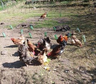 Vend,poules coqs 10 euros pièce,oeufs 3.5 euros les 12.