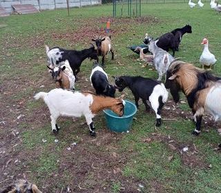 Jeunes chèvres naines et chèvres adultes en attente bébés