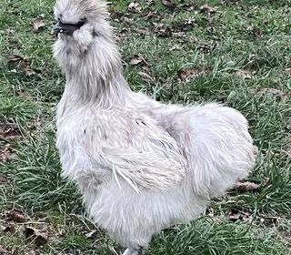 Jeunes coqs de race Poule Soie barbue Grande Race Coloris splash (gris clair) bagués 2025 Possibilité de former un couple avec poule noire Pas de poule seule Contactez