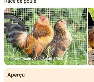 4 Jeunes poules de race Javanaise avec possibilité d'avoir un coq de même race pour reproduction (offert). La Javanaise est une petite poule de couleur saumon doré foncé. C'est une