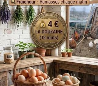 ?uf frais du jour - Direct producteur ! ?40 ?ufs par jour, issus de poules élevées en plein air. Parfait pour les goûter ou pour offrir. 12 ?ufs 4€ Contactez-moi pour plus