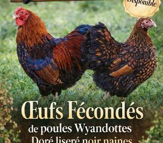 ?? AUCUN ENVOI ? À RETIRER SUR PLACE UNIQUEMENT SUR MONTPELLIER 34 Les jolies plumes du Sud vous propose des ?ufs fécondés de poules Wyandotte naines doré liseré noir, issus de