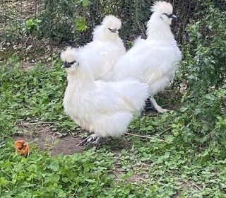 À vendre poule soie blanche 5mois ainsi que coq soie blanc
