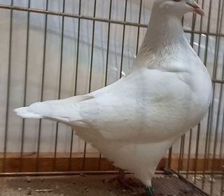 A ceder, jeunes pigeons pure race texans, sujet de concours, exposé au championnat de France. Les pigeons sont bagués (bague officielle indiquant l'année de naissance), vermifugés