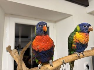 Je mets en vente pour une amie deux très beaux loris eam un mâle de 2 ans qui parle déjà beaucoup et une femelle de 7 mois tout juste parfaitement éduquée à la main les deux ensemb