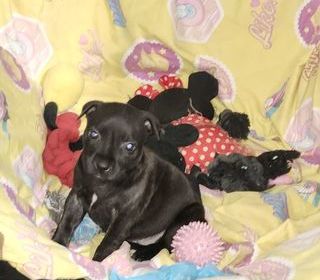 Bonjour athena staffie de 2 mois recherche sa famille pour la vie tous cest frère et s?ur on rejoint leur famille aujourd'hui. Elle est pucer vacciné inscrit au lof certificat de