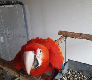 Capacitaire cède à ayant droit .( cède qu'à une personne capacitaire ou ayant une APD pour cette espèce ). ARA Macao Mâle - Bagué 2025 -élevé a la main 100 % manipulable - totale