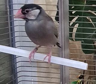 Padda de java mâle, bagué, il à 3 mois. Commence à siffloter...