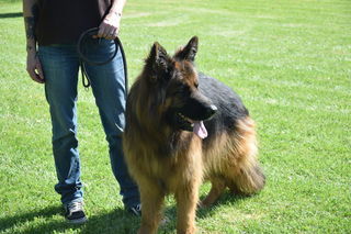 Nous réformons notre mâle reproducteur. Il s'agit de Saxon, un berger allemand à poils longs. Il est âgé de 5 ans et est castré. Nous disons de lui que c'est le chien le plus g