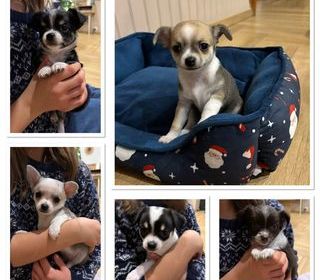 À réserver 4 chiots chihuahuas 3 femelles (850€) non et 1mâle (750€) 1 femelle marron et blanche poil long 1 femelle tri-color poil ras 1 femelle blanche et grise poil ras