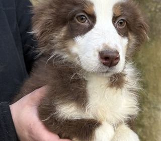 chiots berger australien né 27/12/2025 sont pucé, vacciné avec certificat veto. 3 males et 2 femelles rouge tricolore 650€, 4 males rouge merle 850€, 1 male et une femelle bleu mer