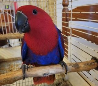 A céder petite femelle éclectus (4 mois) élevée main et disponible de suite. Elle est baguée.