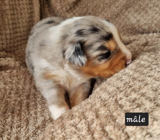 A réserver magnifiques chiots bergers américains miniatures. La portée est issus de parents inscrit au lof,de pure race,non confirmés. 2 chiots bleus merles 1 femelle,1 mâle 130
