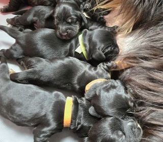 PORTÉE DISPONIBLE ? Cocker Spaniel Anglais Nous proposons à la réservation une magnifique portée issue du mariage entre : Aïko (noire et feu) × Uggy (golden) Les deux rep