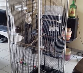 Cage marque Ferplast Nota Sur roulettes 1,62m x 0,70 x 0,42 Avec accessoires (abreuvoir, 2 mangeoires, échelle, nichoir, perchoirs, miroir, balançoire, jouet) Très bon état Do