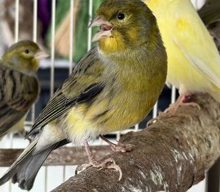 Couple de canari de 2024 Femelle jaune Mâle vert excellent chanteur Déjà reproduit cette année 50 euros échange possible contre autre couple ou autre oiseau