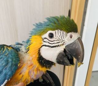 Cède jeune femelle Ara Ararauna, perroquets élevés à la main (EAM), très apprivoisé, très imprégné à l'humain, bague fermée 2025, tous les documents obligatoire, pour ayant droit.