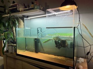 vends aquarium avec deux poissons rouges pompes et decoration