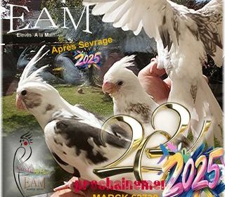 Bonjour , Saison reproduction et quelques futurs oiseaux EAM seront disponibles ... uniquement sur réservation plusieurs mutations / couleurs variées Accessibles à Toutes et