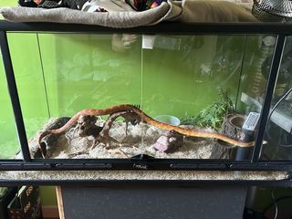 Bonjour , Suite à des différents familiaux, je me sépare de mon serpent des blés, Vendu avec tout le matériel fonctionnel ( lampe chauffante, tapis chauffants, boîte de transport
